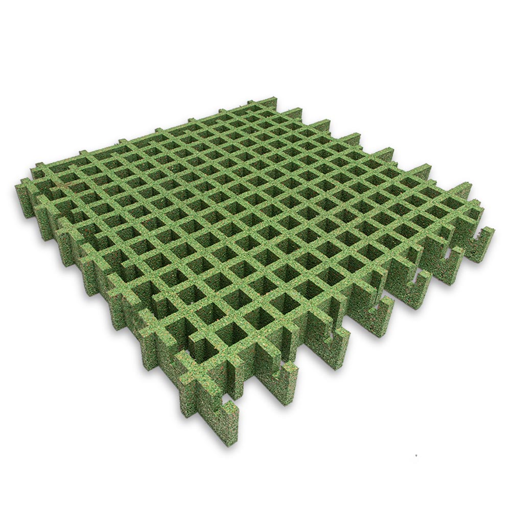 Die Rasengitterplatte 100 Impact+ ist eine äußerst flexible Flächenbefestigung für hochfrequentierte Bereiche, die dauerhaft begrünt werden sollen. Das patentierte System aus kleinen Rasenkammern ermöglicht ein schnelles Anwachsen des Rasens und verhindert das Abspielen der Grasnarbe. Die stoßdämpfende Eigenschaft der IIR-Platte sorgt für zusätzliche Sicherheit bei einer Fallhöhe bis 3,00 m.